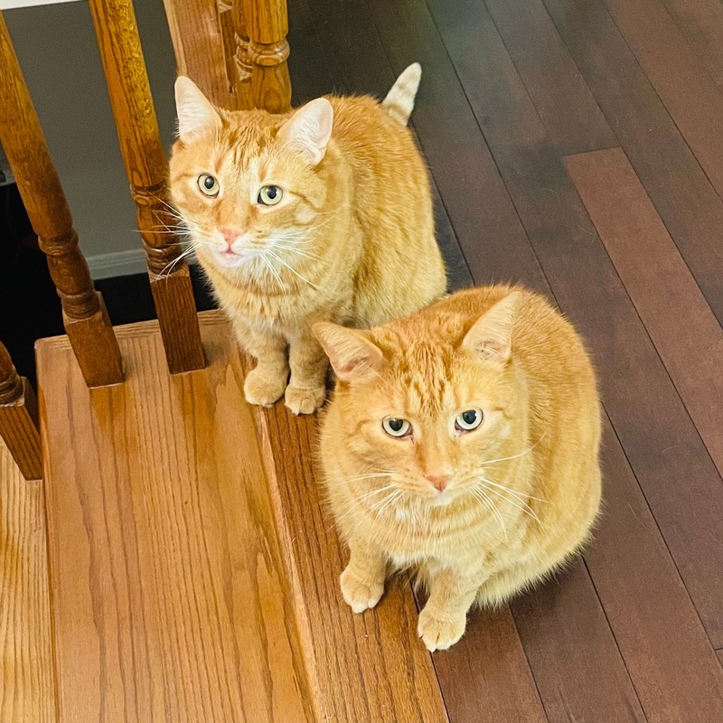 Walt (on the right) has a clingy personality and loves to be around people. He's the type of cat who will follow us around the house and curl up on our lap whenever he gets the chance. Despite his affectionate nature, Walt can be a bit of a loner when it comes to other cats. He doesn't seem to enjoy the company of another cat rather than his brother. However, when it comes to people, Walt is a social butterfly who will always be there for cuddle and cuddle and .... more cuddle...